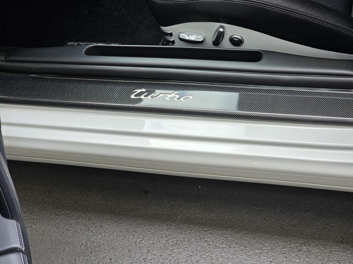 Porsche crest embossed on headrests,Carbon door sill guards illuminated.